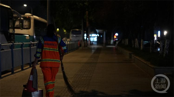 凌晨4点30点,黄秀敏抵达工作地点。作为五红路班组的班组长,黄秀敏的首要工作是巡查班组的环卫工人是否准时到岗。沿着五里店方向前行,每隔一段路程,总会先听到唰唰的扫地声,再出现一个个忙碌的身影。
