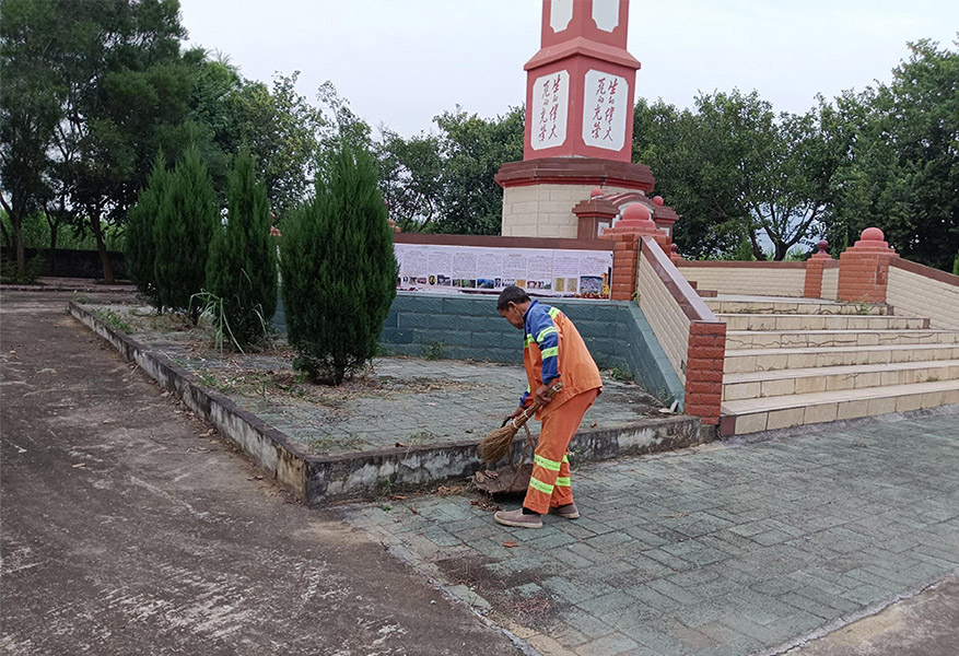 11月5日上午,我司广西武宣项目部对黄茆镇近4000平方米的烈士陵园环境进行了义务清理,用实际行动表达对先烈的缅怀和崇敬。期间,完成了烈士陵园内部枯枝落叶清扫、垃圾杂物清理、杂草铲除和灰尘擦拭,经过6个小时的...