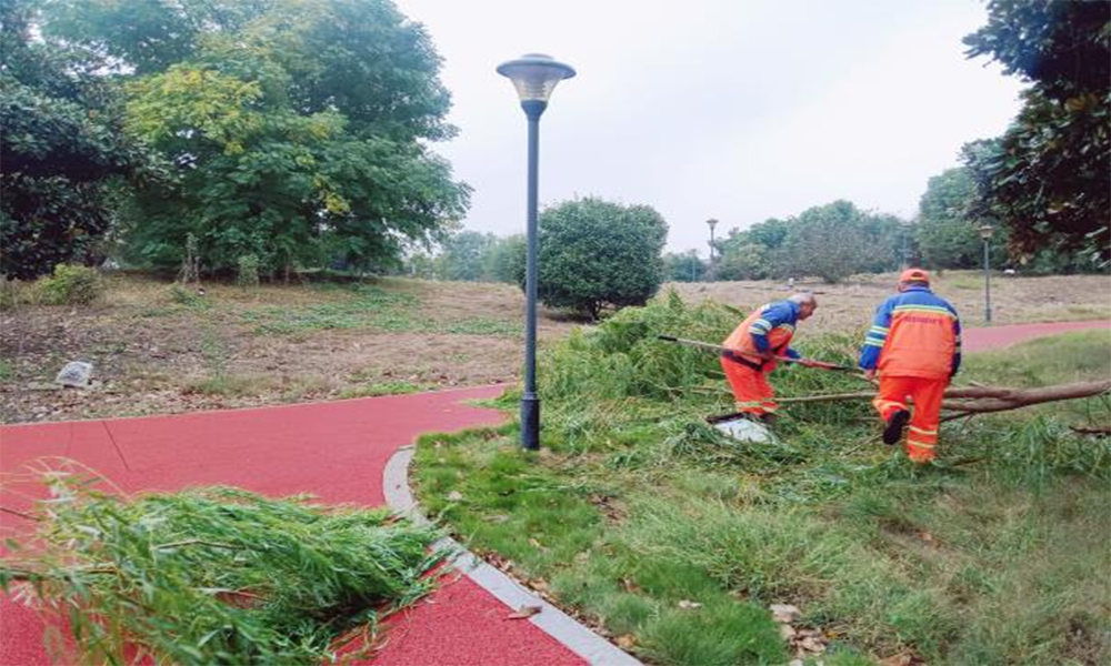 10月23日,江苏省兴化市沙沟镇遭遇大风暴雨天气,导致多处行道树枝干断裂,存在一定的安全隐患。我司兴化项目部第一时间安排巡回车处理断裂枝干,组织保洁人员清理路面残枝落叶。同时,项目部要求巡回队在镇区巡回排...