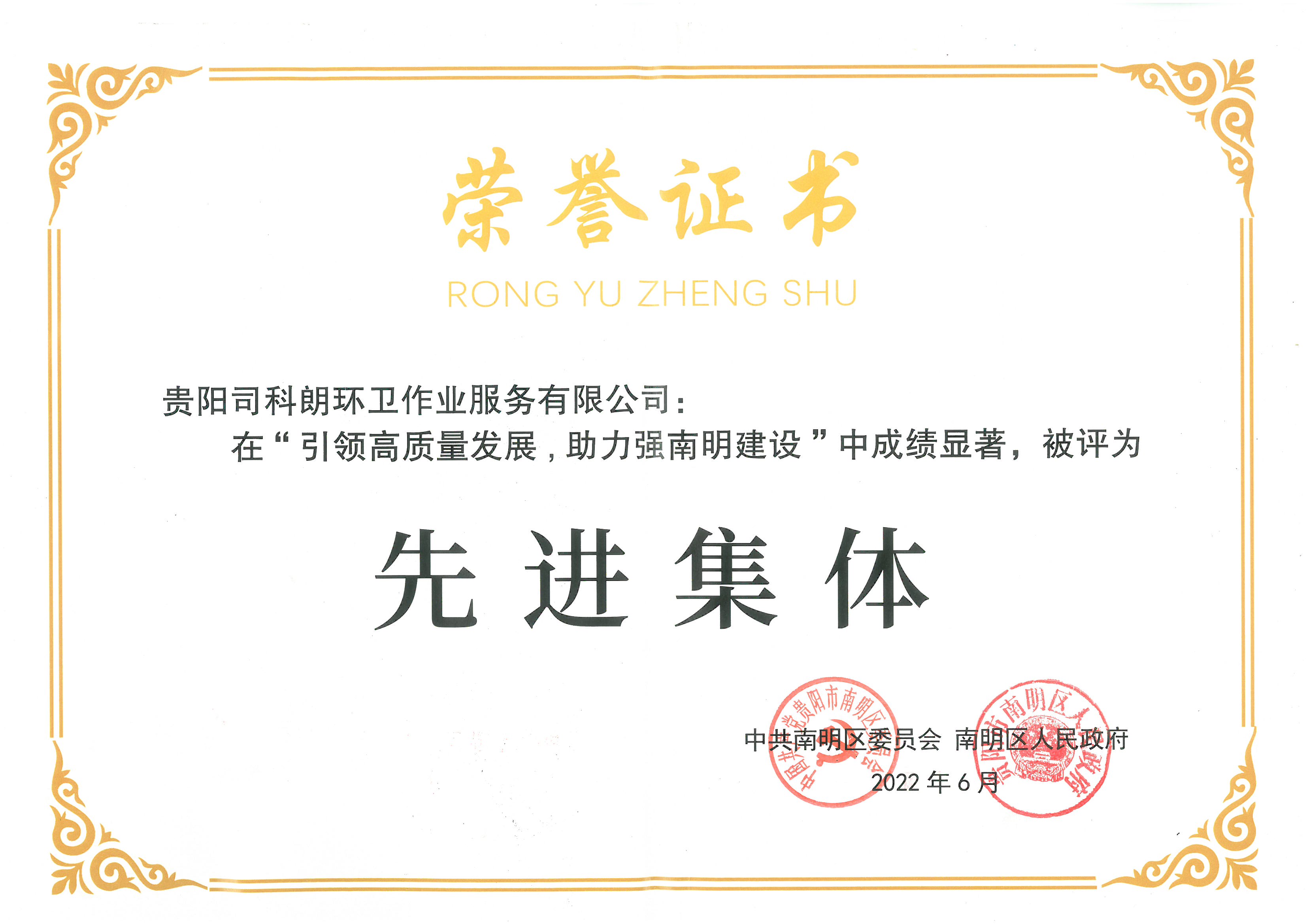 贵阳子公司“引领高质量发展,助力强南明建设”先进集体
