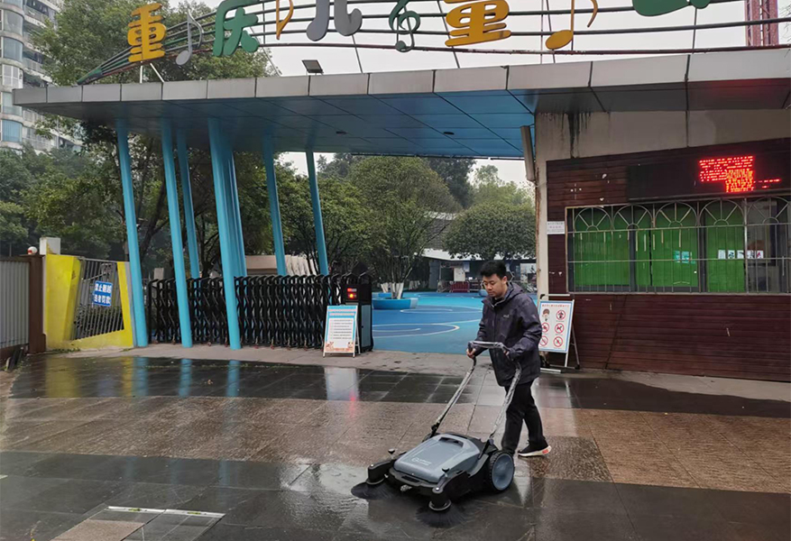 近日,作业公司拟利用小型机具优化人工作业模式的试点正式展开。先期购置的手推式扫地机设备已经在观音桥项目三湾路儿童公园段投入使用,另有小型载人器具也将陆续投入试点。