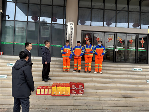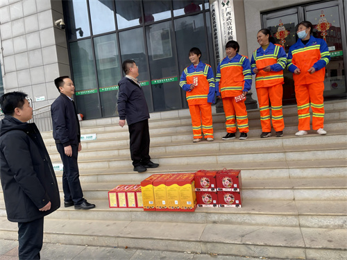 2月2日,广西省武宣县委书记雷应天一行来到武宣县鞍山路街道,慰问节日期间坚守环卫一线的我司武宣项目部员工。期间,雷书记为我司员工送来新春祝福和慰问礼品,并与他们亲切交谈、嘘寒问暖,尤其是对他们坚守岗位、默默奉献的精神表达了深深谢意。